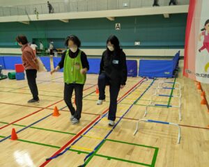 障がいのある方を対象にしたスポーツ施設の専用開放イベントで、子どもから大人まで、障がいの状況に応じてさまざまなスポーツや運動を体験できる内容でした。